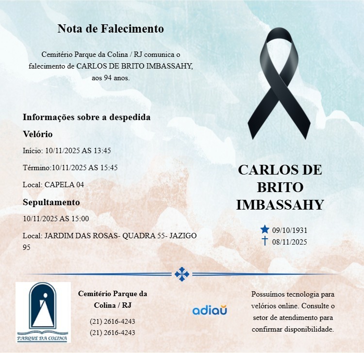 No último dia 9 de novembro retornou ao Mundo Espiritual nosso querido amigo Professor Carlos de Brito Imbassahy, aos noventa e quatro anos de idade. Era professor de física, conferencista, articulista e escritor espírita. Vários textos de sua autoria estão publicados em nosso Portal.