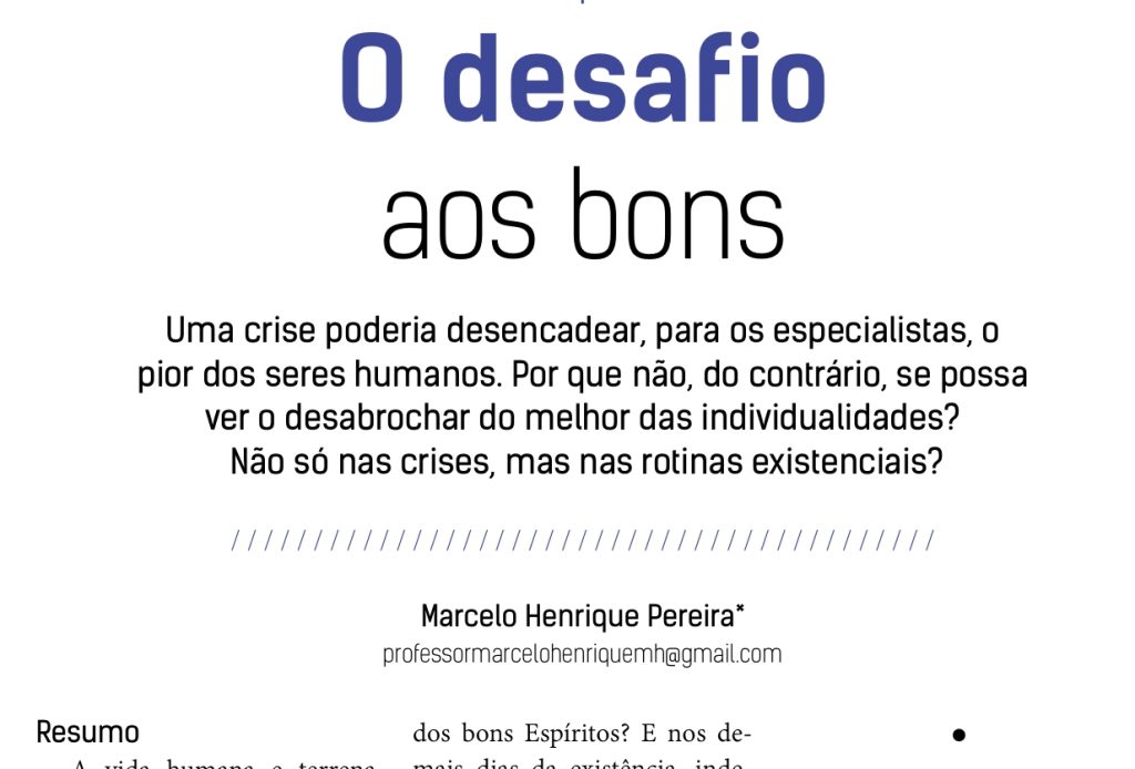 O coordenador-geral do Coletivo ECK, Marcelo Henrique, encaminhou para a revista Reformador — veículo da Federação Espírita Brasileira (FEB) —, na edição de setembro, da o artigo “O desafio aos bons”.